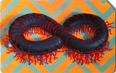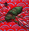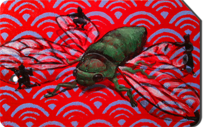Cicada Bunraku oil, galkyd, on a Metro Card