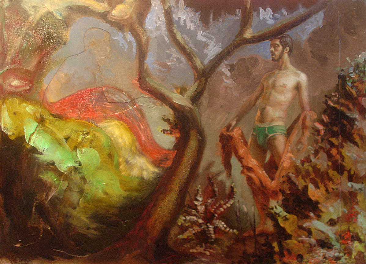 Seminal Desires of a Man with a Fox Suit graphite, paper, and galkyd on panel