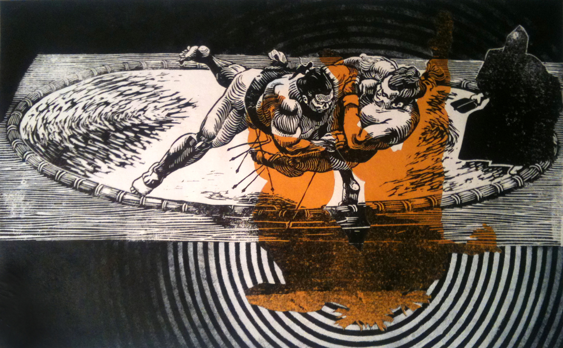 36 views of combating temperamentsmonoprint 2/36 (14"x18")